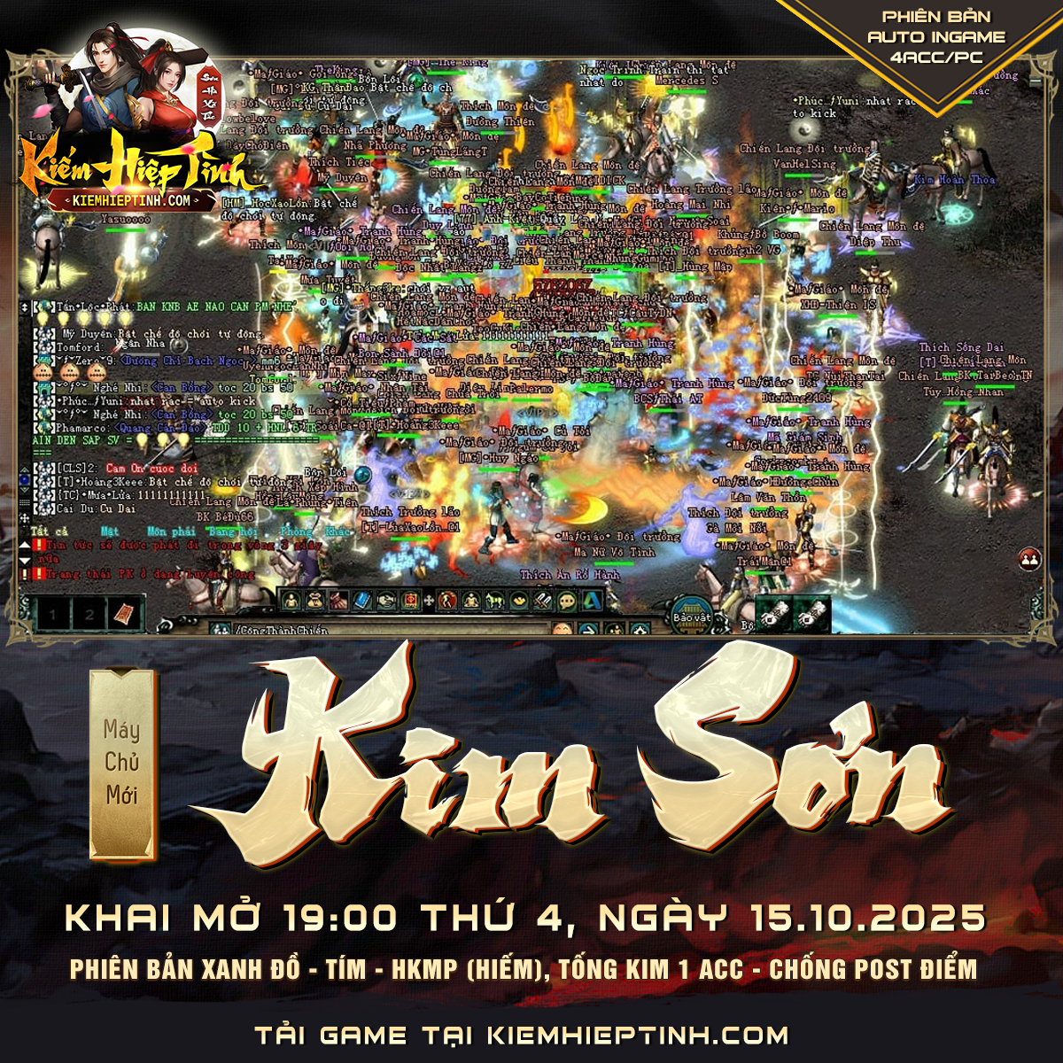 Máy chủ mới KIM SƠN – đứa con tinh thần mang trọn tâm huyết của đội ngũ KIẾM HIỆP TÌNH, được xây dựng với mong muốn đưa quý nhân sĩ trở lại một thời phiêu bạt hào hùng của Võ Lâm Truyền Kỳ – Phiên Bản Sơn Hà Xã Tắc.