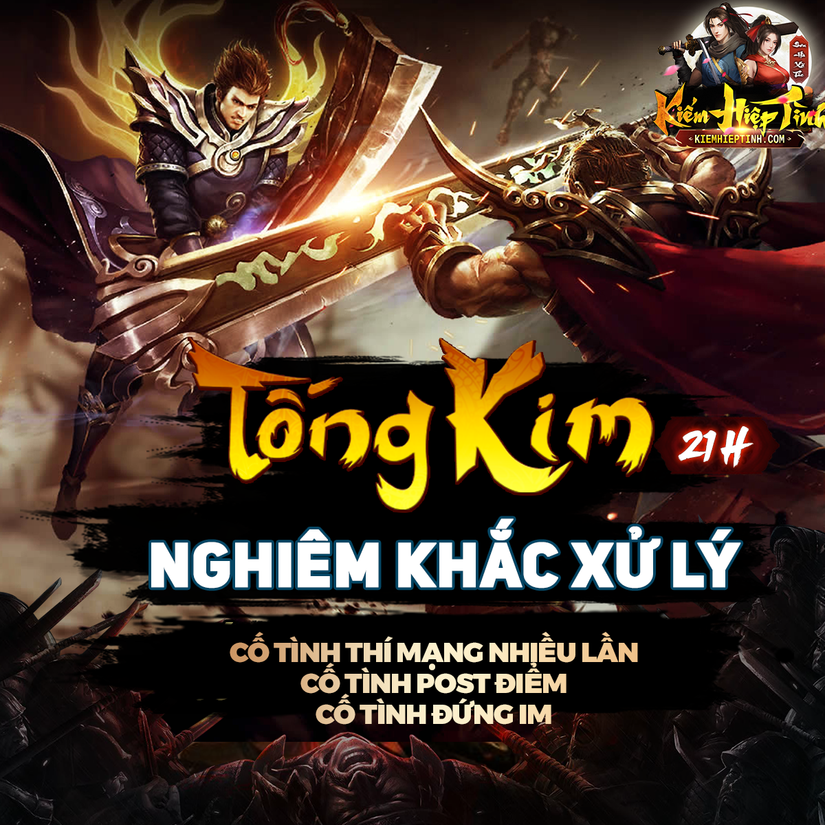 Do đó, bổn trang cũng nhắc nhở đến chư vị đồng đạo đã, đang và có ý định thực hiện các hành vi trên thì hãy vì cộng đồng VLTK2005 vững mạnh dừng và không thực hiện những hành vi này. Để mang đến 1 chiến trường Tống Kim trong sạch và hấp dẫn, Kiếm Hiệp Tình cũng quy định 1 số hành vi sau là nằm trong diện không trong sạch Tống Kim, sẽ được Kiếm Hiệp Tình xử lý mạnh tay: